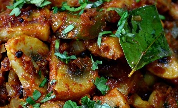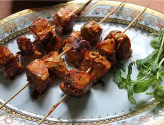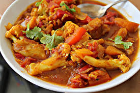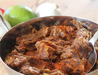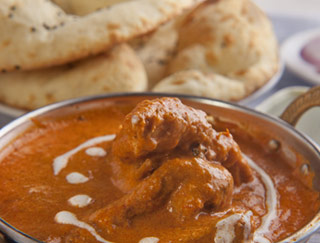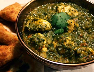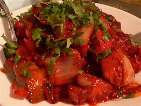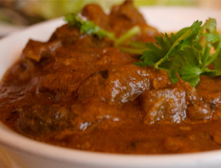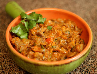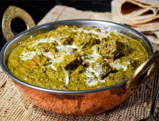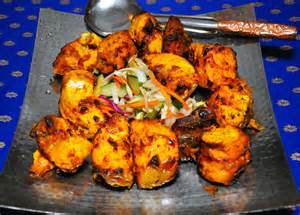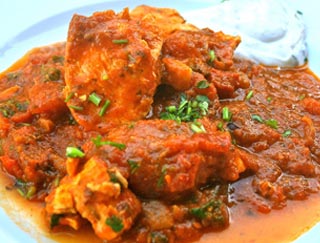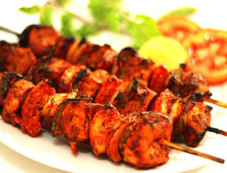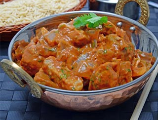 Dishes are cooked in a clay oven and served on a sizzling platter.