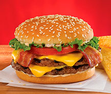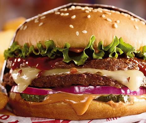 Our pub-style Tavern Double ™ burgers are made with two of our classic patties and served with Red Robin Steak Fries®.